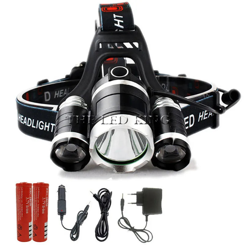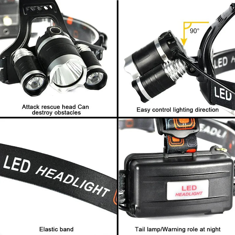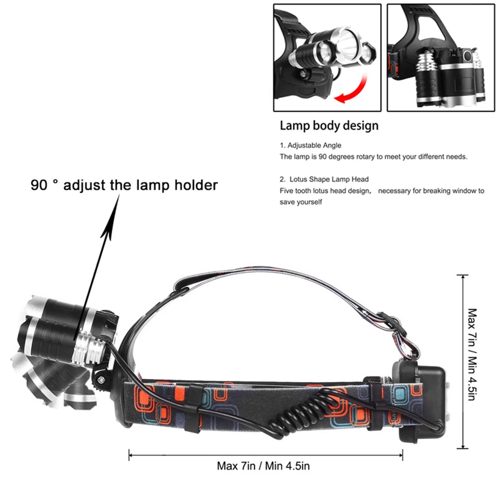 مصباح رأس قوي بإضاءة LED عالية، قابل للشحن ويوفر رؤية واضحة في الظلام.