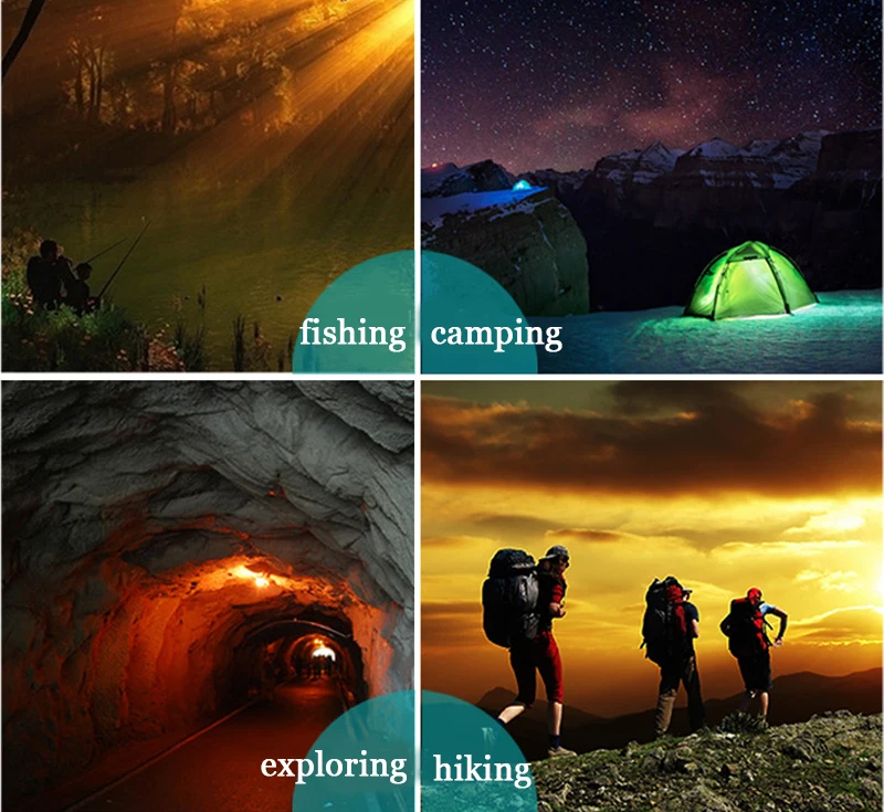 بطارية مصباح أمامي فائقة السطوع ومقاومة للماء وقابلة لإعادة الشحن، مع 4 أوضاع إضاءة، صالح للصيد وصيد الأسماك والتخييمفي حال وجود بطارية :